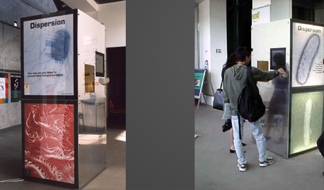 Dispersion, which received an Ars Electronica Distinction Award, is a functional personal pathogen vending machine that presents a seductive visual and interactive experience framed within the context of a common vending machine and a resulting ethical and moral dilemma.